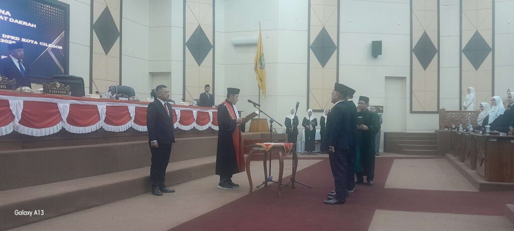 Cilegon – Rizki Khairul Ichwan ditetapkan sebagai Ketua DPRD Cilegon definitif. Demikian terungkap dalam rapat paripurna Dewan Perwakilan Rakyat Daerah (DPRD) Kota Cilegon, dalam rangka pengucapan sumpah/janji pimpinan DPRD Kota Cilegon, 2024-2029 di ruang rapat DPRD Kota Cilegon, Jumat (27/9/2024).